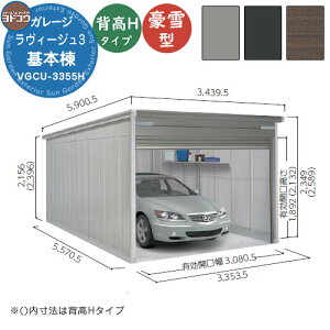 [商品名] ヨドガレージ ラヴィージュ3 背高Hタイプ 豪雪型 基本棟 VGCU-3362H [サイズ(mm)] 幅3353.5×高さ2588×奥行き6271.5 有効開口寸法:幅3...