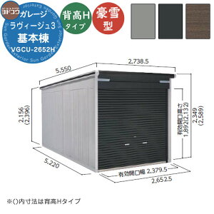 ヨドガレージ ラヴィージュ3 VGCU-2652H 基本棟 豪雪型 背高Hタイプ 車庫 シャッター ガレージ 自動車 バイク 自転車 倉庫 おしゃれ シンプル 戸建て 庭 かわいい 大容量 大型 アウトドア...