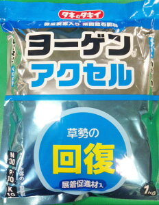 ヨーゲンアクセル1kg 旧ヨーゲン強力2号 【特長】 ・生育促進全般 ・風水害後の早期回復 ・葉色改善 ・増収と品質の向上 ・苗の活着促進 など 【規格】 ・登録番号:生第77972号 ・種類:配合肥料...