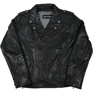 WIDE SOURCE(ワイドソース) 本牛革(COW) 革ジャン ダブルライダース レザージャケット【BSJ-7091】 右側に内ポケット付き。 肩、肘、背中にパッド入り(取り外し可能) カラー:ブラック...