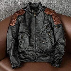 ハレーバイクレザージャケット 上品 本革 高級 牛革 切り替えライダースジャケット 革ジャン