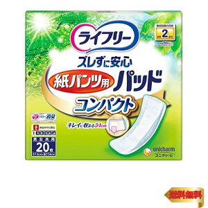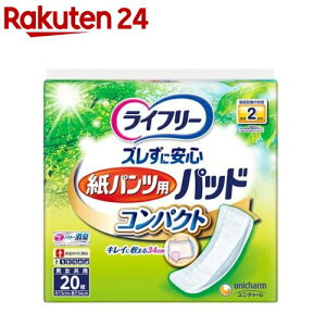 失禁対策・トイレ用品>尿とりパッド>尿とりパッド パンツ用>ライフリー ズレずに安心 紙パンツ用尿とりパッド コンパクト 2回吸収 (20枚入)【ライフリー ズレずに安心 紙パンツ用尿とりパッド コンパクト 2回吸収