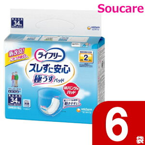 トイレ用品>尿とりパッド>尿とりパッド ケース>ライフリー ズレずに安心 うす型紙パンツ専用尿とりパッド 2回吸収 (34枚入×6セット)【ライフリー ズレずに安心 うす型紙パンツ専用尿とりパッド 2回吸