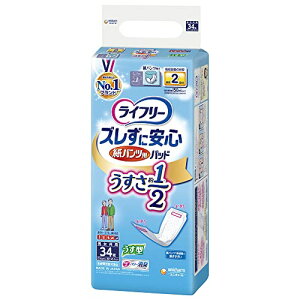 ー パン ツ用尿とりパッド ズレずに安心うす型 紙パ ン ツ専用 2回吸収 34枚うすさ約1/2※1だから、パン ツ1枚感覚。パン ツと重ねてもごわごわしない紙パ ン ツ専用尿とりパッド ※1 ライフリー尿とりパッド女