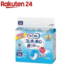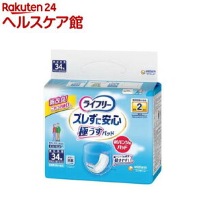 トイレ用品>尿とりパッド>尿とりパッド ケース>ライフリー ズレずに安心 うす型紙パンツ専用尿とりパッド 2回吸収 (34枚)【ライフリー ズレずに安心 うす型紙パンツ専用尿とりパッド 2回吸収の商品詳