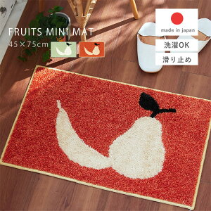 商品について 日本製 フルーツミニマット 45×75cmフルーツのイラストと鮮やかなカラーでお部屋を明るく彩ってくれるミニマット。日本国内で高い品質基準値をクリアした国産品。洗濯ネットに入れてご家庭用の洗濯機でも丸洗いできるから