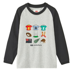 グスリーブTシャツです。 胸にカンタベリーに馴染みのあるニュージーランドの国鳥キウイバードと羊のラグビープレイの様子をイラストで表現し