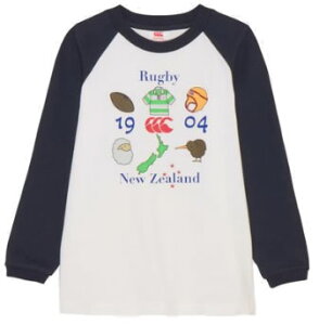 オーガニックコットンを使用した程よい肉厚感のKIDS ロングスリーブTシャツです。キウイバードやシダ、ラグビーなどニュージーランドにゆかりのあるものをモチーフにカラフルにプリントされたロングスリーブTシャ