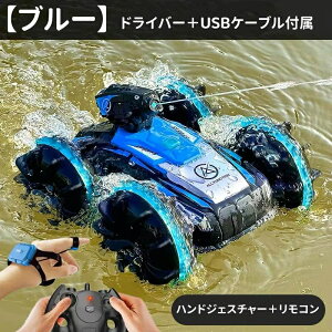 ?【水陸両用スタントカー】:大きい四輪で駆動する水陸両棲ラジコンカーです。前進、後退、左折、右折、陸上と水上で360度回転とフリップでき、両側を駆動することができます。4WD搭載の2つの強力なモーターを搭載し...