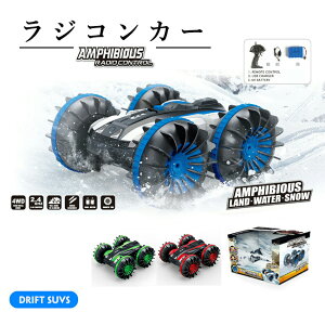 水上でも陸上でも遊べる!コントローラーで操作可能!水陸両用ラジコンカー【水陸両用スタントカー】大きい四輪で駆動する水陸両棲ラジコンカーです。室内はもちろん、砂や瓦礫の多いアウトドア、プールや小川の水面でも走行できます