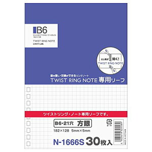 方眼方眼罫/B6/N1666S_25・Size:B6Style:方眼・パッケージ個数:1・【セット数】25組・【1組】30枚・【サイズ】B6・【穴数】21穴・【種類】方眼。●ツイストリングノート専用リーフ。●無地・A罫・B罫・方眼罫の...