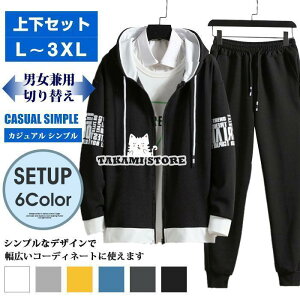 上下セット 切り替え メンズ ルームウェア スポーツウェア パーカー ロングパンツ ジップアップ セットアップ パーカ トップス プリント 肌触り フード付き 長袖 文字 運動着 部屋着 メンズファッション【品...