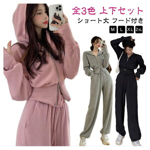 【上下セット】【M L XL XXL】【全3色】ショート丈のジップアップパーカーと、パンツのセットアップです。スポーティーで可愛くカジュアルコーデにぴったり♪外出先でもおうちでも活躍するリラックスしたい時に(^-^)パーカーは前開きのジッ