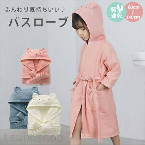 サイズ:80cm-140cm ◎お風呂上りやプールなどで活躍するフード付きバスローブ! 濡れた髪もすっぽりかぶって拭けるのでヘアタオル代わりにも使える便利なフード付き。 ◎お子さまの肌にも優しくて安心な綿100%素材です...