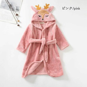 ★鹿柄の可愛いフードデザイン ふわふわで柔らかいキッズバスローブ ★長袖で防寒性が高く、秋冬の寒い季節にぴったり ★フード付きで、お風呂上がりの濡れた髪も優しく包み込み、寒い冬場でも風邪を防止することができ