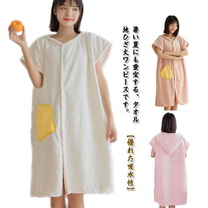 暑い夏にも重宝する、タオル地ひざ丈ワンピースです。赤ちゃんをお風呂に入れる時に、自分のことがニの次になってしまうママのために開発された、「ワンオペお風呂」応援のバスローブです。【優れた吸水性】汗ばむ季節にうれしい優れ