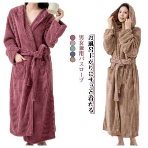 フランネル素材のバスローブとルームウェア。メンズとレディース対応のマキシ丈で厚手設計。フード付き長袖でサウナや風呂上がりに最適。