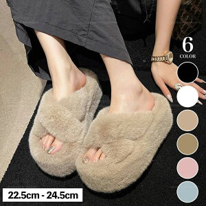 柔らかくて暖かい履き心地が秋冬に嬉しい、もこもこファーのルームサンダルです。可愛いクロスベルトのデザインになっていて、足元を程よくホールドしながら温もりを与えてくれる防寒対策にもぴったりの1足です。お部屋用のサンダルと
