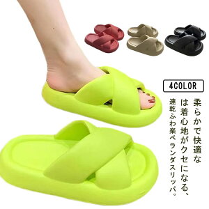 柔らかで快適なは着心地がクセになる、速乾ふわ楽ベランダスリッパ。厚底のEVA素材が適度な弾力とマシュマロのようなふんわり感を実現。滑りにくく歩きやすいので、浴室のバススリッパや、プールサイド、水遊びなど…様々なシーンで活