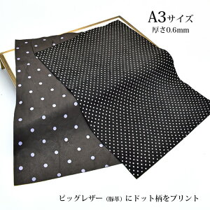 牛革にカラフルな水玉模様をプリント仕上げした革をA3サイズにカットしています。総柄プリントされています。A3サイズありますので、バッグ、クッションカバーなど大きめの小物も作れます。カラフルな水玉模様は小物制作に部分づかいを