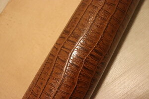 ■商品詳細 傷や水に強く扱いやすい顔料仕上げ エキゾチックなクロコが型押しされたエンボス加工です 加工:クロコ型押し なめし:クロムなめし 厚さ:2.0ミリmm 革の種類:牛革 手触り:やや硬め 状態:少々傷があります 形状:半裁一枚
