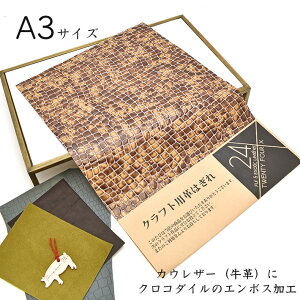 牛革をA3サイズにカットしました。クロコダイル型押しの加工をしています。独特の模様と質感があるので、大きく使うのはもちろん、作品の一部分として使ってもデザイン性が上がる素材です。A3サイズの大きさがありますのでバッグ、クッ