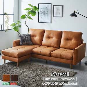 ・革のような風合いを持ち、布生地のような肌触り。・人気の新素材レザーファブリックを使用したカウチソファーです。・背もたれはシリコンフィル入りでふっくら柔らかです。・別色のクッションが2個付いております。