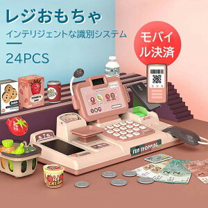 【お買物ごっこしよう!】大人気のレジスターでお買物ごっこを遊びしよう!実際のレジにあるような機能も搭載しており、ベルトコンベアーに商品をおいてボタンを押すと本当に動く!スキャンすると商品を識別して、液晶部分に値段が映