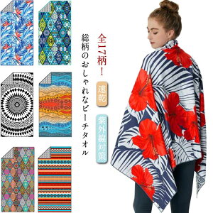 全17柄!総柄のおしゃれなビーチタオル軽量で吸水力抜群なマイクロファイバー素材を使用。肌触りは滑らか。ビーチやプールでの日よけ・冷え対策に役立ちます。80×160cmの大判サイズは体を拭いたり、羽織ったり...