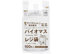 取っ手付きのレジバッグ・手提げ袋です。植物由来成分バイオマス25%含有で、環境にやさしいレジ袋無料配布対象商品です。柔らかく、良く伸びるのが特長です。レジ袋本体にJANコード・プラマーク・バ