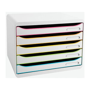 規格:A4判ヨコ型,5段 外寸:幅355×奥270×高271mm 重量:約2.7kg 引出内寸:幅324×奥248×高31mm 材質:PS(静電防止)