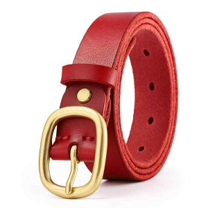 ベルト レディース シニア 大人 エスニック 銅 ピンバックル 牛革 シングルループ 普段使い 外出用 シンプル 無地 おしゃれ カジュアル 赤
