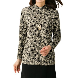 ブラック ベージュ カットソー ハイネック 長袖 花柄 レディース 婦人服 ミセス シニア 女性 大人 黒 上品 スタンドネック 柄 トップス シニアファッション 40代 50代 60代 70代 80代 90代...