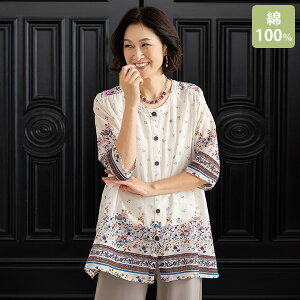 ゆるりとしたラインが優美で、繊細な小花柄がほんのりレトロ。 涼やかな薄手のコットンブラウスは、夏の羽織りにも最適。 □ゆったりシルエット □綿100% [M]バスト126(79〜87)、着丈69、肩巾38、袖丈40 [L]バスト132...