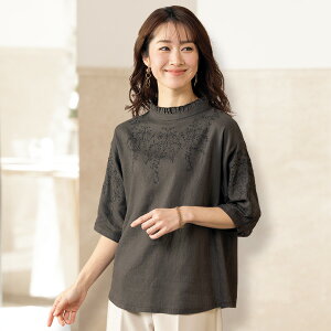 フリル襟が可愛い綿麻素材の刺しゅうブラウス。 袖と胸元に刺しゅうが入ったブラウスは、フリル襟で可愛らしく、綿麻素材で涼やかに着こなせます。 爽やかな夏らしいカラーが目を引く商品です。 □麻30% [ML]バスト104(79〜94)、着...