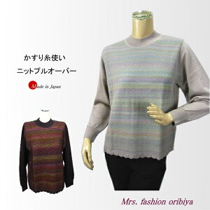 前身頃にはニュアンスのあるかすり糸を用いた編み模様。 裾の透かし編みもおしゃれです。 上品でやさしい雰囲気漂うニットプルオーバー。 チクチク感の少ないソフトな風合い。 ご家庭で手洗いできてお手入れ簡単。 ぬくもりやさしい着