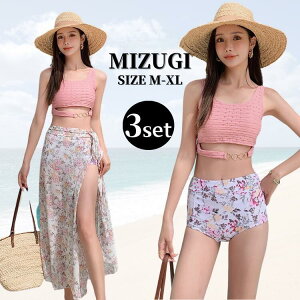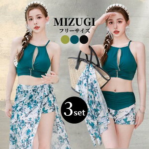 水着 セパレート レディース 花柄 パレオ 体型カバー リゾート 3点セット ビキニ セクシー お洒落 かわいい ミックスマッチ 露出控えめ