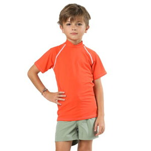 海水浴やプール、水遊びなどアクティブなシーンにピッタリの半袖ラッシュガード。袖はやや長めに設定し、首元も紫外線予防ができるハイネックを採用しました。ラグランスリーブのため腕を動かしやすく、ステッチ使いでスポーティーな