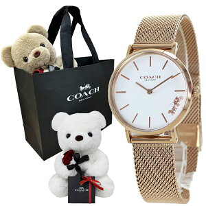 ショッパー付き コーチ 腕時計 レディース 時計 女性 誕生日 プレゼント 贈り物 女友達 ギフト 女の子 プレゼント 10代 20代 彼女 妻 姪っ子 高校生 ぬいぐるみ インテリア 時計 【腕時計とふわふわの愛らしいベアのキュー