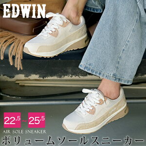 EDWINのボリューム感あるエア入りソールスニーカーです。 アッパーは通気性のよいメッシュ素材を採用。 すべりにくく返りのよいエアー入りの底で歩きやすく軽快な履き心地。 足の負担が少ないスタイルアップシューズです。 厚底でもスタ