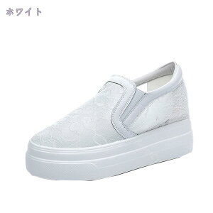 表地:メッシュメイン素材:メッシュ【カラー】 ホワイト 【サイズ】22cm 22.5cm 23cm 23.5cm 24cm 24.5cm 25cm4cm厚底ソール、3cmシークレットで美脚効果はばっちり、ふわふわクッション、歩きやすさ...