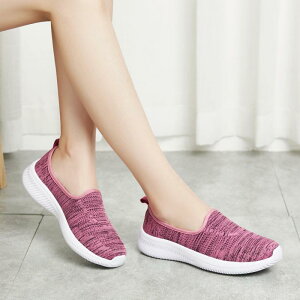 ニット素材 軽量 スリッポン メッシュ ランニングシューズ ジョギングシューズ ウォーキングシューズ 運動靴 クッション性 紐なし 歩きやすい ぺたんこ 楽ちん 走れる 靴 疲れない おし