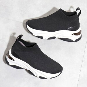 トレンド感と機能性抜群なソックススニーカー!ペットボトル再生糸を使用したニットでサスティナブルな1足です。表面に撥水加工をしているので、急な雨でも安心して履いて頂けます。踵にきらりと光るミラー箔がクラス感あり◎!