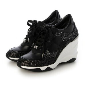 ■デザイン美脚効果抜群の9cmヒールアップスニーカーに、ラインストーンシューアクセサリーやグリッター、スタッズをあしらい、ラグジュアリーでちょっぴり辛口なデザインにアップデート!足元に華やかな輝きをプラスし、コーデのスパ。