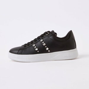 ■デザインサイドに並んだスクエア&ラウンドビジューと、シューホールにあしらったビジューが華やかなアクセント。コートスニーカーのシンプルさはそのままに、贅沢な輝きで特別感をプラスした、NEWモデルです。デイリーコーデを格上