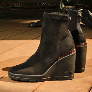■デザインミニマルな美しさが光る、シンプルショートブーツ。無駄を削ぎ落としたシルキー素材のアッパーに、すっきりとした9cmのハイウェッジが映える、クリーンで女性らしい一足。装飾を控えたデザインだからこそ、足元のラインが際
