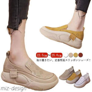 軽量で、足へ負担をかけないので、疲れにくい厚底スリッポンシューズ!アッパーはマイクロファイバー素材でできており、柔らかく通気性があり、精巧な仕上がりでお手入れも簡単です。アウトソールには耐摩耗性に優れたゴムを使用し、