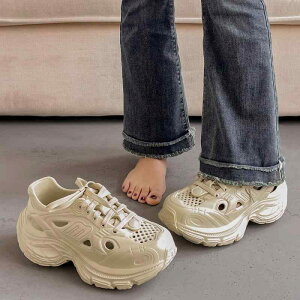 ホワイト カーキ ピンク 穴あき おしゃれ きれいめ ごつ可愛い 厚底 シューズ 韓国系 滑り止め レジャー アウトドア 大きいサイズ 春夏 くつ 汚れにくい 滑りにくいカラー:ブラック、ホワイト、カ