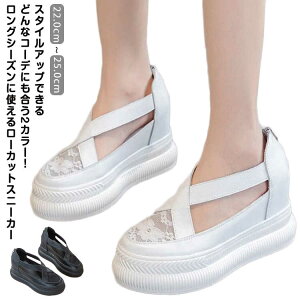 商品情報 ・名称:カジュアルシューズ ・表記サイズ:22.5cm〜24.5cm(実寸22.0cm相当〜24.0cm相当)・ソール高さ:前約35m/m後約50m/m・素材:アッパー/合成皮革+チュール ・SOLE/軽量ウレタン底 重さ:...