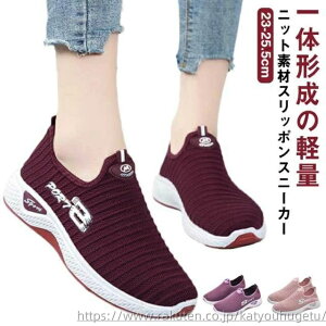 一体形成の軽量ニット素材スリッポンスニーカー甲材は柔らかなニット生地で通気性もよく履き口には伸縮性があります柔らかい滑り止め底は滑り止め加工で歩きやすく、雨の日でも安心柔軟性が抜群、柔らかい靴底と柔らかい靴面で作られ